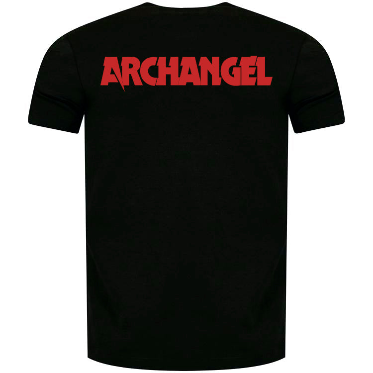 T-shirt with "Total Dark Sublime" artwork on front and red logo on back. Artwork by All Things Rotten.